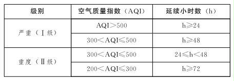 按照大氣污染的嚴重程度以及持續(xù)的時間,大氣重污染分為重度污染(Ⅱ級)、嚴重污染(Ⅰ級)二個級別(見附件2)。