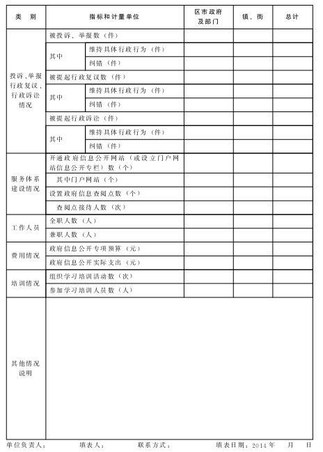 政府信息公開工作情況上報、統(tǒng)計表的填報說明
