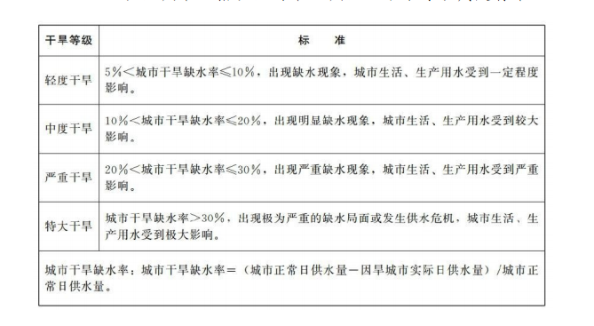 9.1.4設(shè)區(qū)城市(指設(shè)區(qū)的市主城區(qū))干旱等級(jí)判定標(biāo)準(zhǔn)