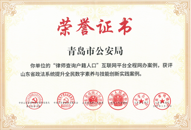 日前,在省委網(wǎng)信辦、省委政法委、省高級法院、省檢察院、省公安廳、省司法廳聯(lián)合舉辦的全省政法系統(tǒng)提升全民數(shù)字素養(yǎng)與技能案例征集活動中,戶政處申報的“律師查詢戶籍人口”獲評創(chuàng)新實踐案例。