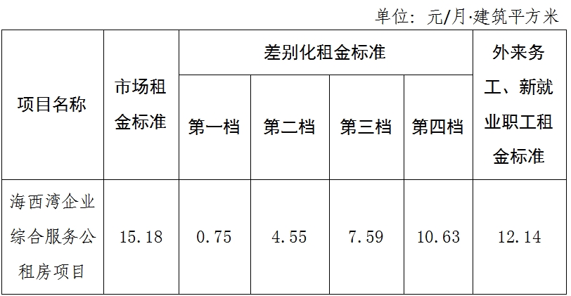 根據(jù)《青島市發(fā)展和改革委員會(huì) 青島市住房和城鄉(xiāng)建設(shè)局 青島市財(cái)政局 關(guān)于西海岸新區(qū)海西灣企業(yè)綜合服務(wù)公租房項(xiàng)目租金標(biāo)準(zhǔn)有關(guān)事項(xiàng)的通知》(青發(fā)改價(jià)格〔2024〕139號(hào))、《青島市住房和城鄉(xiāng)建設(shè)局 青島市財(cái)政局 青島市發(fā)展和改革委員會(huì) 關(guān)于調(diào)整公共租賃住房申請(qǐng)條件和保障標(biāo)準(zhǔn)等有關(guān)問(wèn)題的通知》(青建房字〔2020〕19號(hào))、《青島市住房和城鄉(xiāng)建設(shè)局 青島市財(cái)政局 青島市發(fā)展和改革委員會(huì) 關(guān)于調(diào)整公共租賃住房實(shí)物配租第一檔租金標(biāo)準(zhǔn)有關(guān)問(wèn)題的通知》(青建房字〔2021〕2號(hào))規(guī)定,西海岸新區(qū)戶籍配租家庭按照收入情況實(shí)施差別化租金標(biāo)準(zhǔn),配租家庭有原住房的,配租房屋面積與原有住房面積的差額部分按照公共租賃住房的租金標(biāo)準(zhǔn)繳納房租,原住房面積按照市場(chǎng)租金標(biāo)準(zhǔn)繳納。新就業(yè)職工、外來(lái)務(wù)工人員租金按照市場(chǎng)租金標(biāo)準(zhǔn)80%收取。水、電、燃?xì)?、暖氣、有線電視、電信、衛(wèi)生、物業(yè)管理等相關(guān)費(fèi)用由承租人按規(guī)定另行交納。