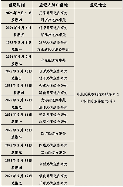2.為避免人員聚集,保障現(xiàn)場登記秩序,方便申請人登記,本次配租登記以街道辦事處為單位實(shí)行錯(cuò)時(shí)分散登記。具體登記時(shí)間:上午9:00—11:30,下午2:00—5:00。具體登記日期、地點(diǎn)如下: